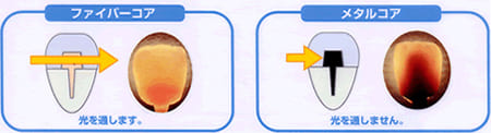 従来では金属の土台(メタルコア)が用いられてきましたが、生体親和性の高いファイバーコアを用いることによって、金属アレルギーや電気の発生を防ぐことができます。
