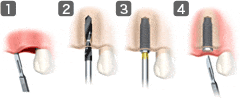 - 歯肉を剥離して顎骨を完全に露出させてから専用ドリルで骨を削ります。