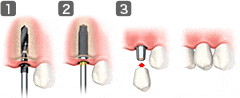 - 約3ヵ月後に歯肉を切開して土台(アバットメント)を付け替えて最終的な歯を装着します。