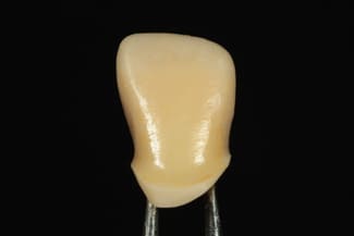 より自然な歯に見えるよう、周りの歯と色調を合わせながら、内側のジルコニアフレームと外側のセラミックの色彩のバランスを整えていき、透明感のあるナチュラルでプロフェッショナルな美しい歯を作り込んでいきます。